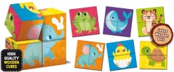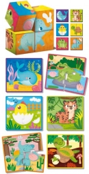 Tato dřevěná sada Montessori kostek a puzzle se zvířátky je ideální pomůcka pro rozvoj logiky a fantazie dětí od 1 roku.