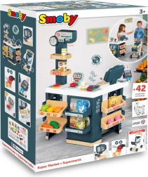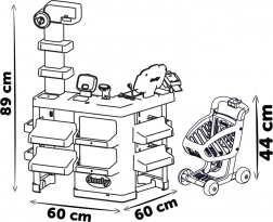 Herní supermarket SMOBY promění dětský pokoj v malý obchod. Set nabízí pokladnu s otevíratelným šuplíkem, mechanickou váhu na vážení ovoce a zeleniny, čtečku karet a elektronický skener se světelnými a zvukovými efekty pro autentický zážitek z nakupování.