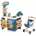 Pokladna, police na zboží a nákupní vozík vytvářejí ucelené prostředí pro hraní rolí prodavače i zákazníka.