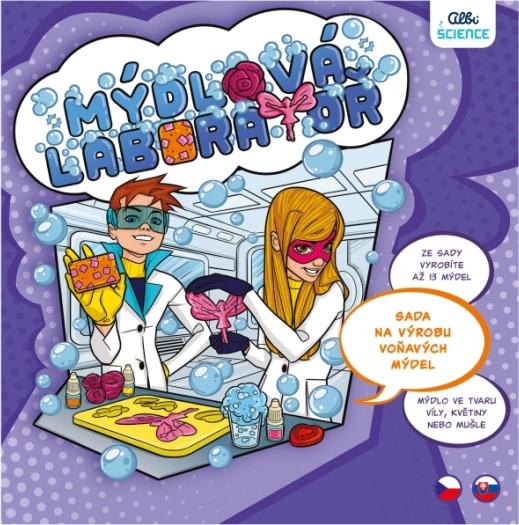 Sada Mýdlová laboratoř ALBI CRAFTS vás provede výrobou vlastních mýdel krok za krokem. Díky přiloženým formičkám, barvivu a vůni snadno vytvoříte originální kousky s průsvitnými kostkami a vloženými barevnými tvary. Práce je jednoduchá, zábavná a skvěle rozvíjí kreativitu.