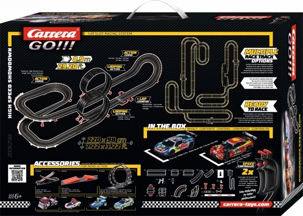 Autodráha Carrera GO vás vtáhne do světa vysoké rychlosti a přesného řízení. Díky měřítku 1:43 získáte kompaktní, ale akční okruh s bohatou výbavou: dva loopingy, klopenou zatáčku i kolmou stěnu pro adrenalinové manévry. Mechanické počítadlo kol udrží závody fér a funkce Turbo na ovladačích dodá potřebný švih na cílové rovince.