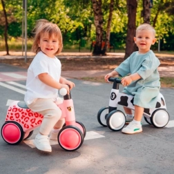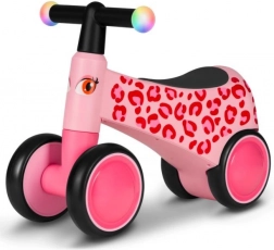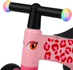 Roztomilé dětské odrážedlo Lionelo Sammy Pink Rose inspirované růžovou panterou podporuje rozvoj rovnováhy a motoriky. Má 4 stabilní kola, ergonomickou konstrukci, pohodlné dvojitě polstrované sedlo a svítící koncovky gripů s pohybovým senzorem. Lehká konstrukce se snadno přenáší a udržuje – stačí otřít vlhkým hadříkem.