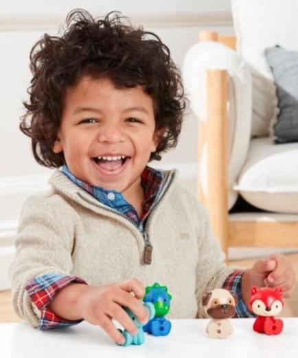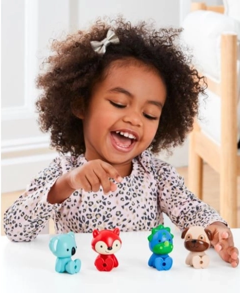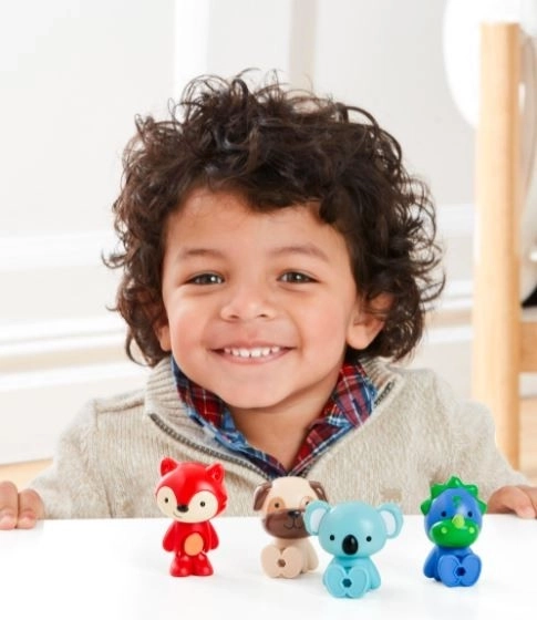 Sada Skip Hop Zoo Crew potěší každý dětský pokojíček. Čtyři barevné figurky – Preston Pug (pejsek), Ferguson Fox (liška), Kenzie Koala a Dakota Dino – jsou navržené pro malé ruce, aby se daly snadno chytit, přenášet a stavět do různých pozic. Díky pohyblivým částem umí stát, sedět i pózovat, což podporuje kreativní vyprávění příběhů.