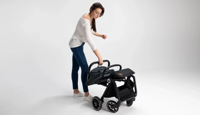 Jedním stiskem se kočárek sám složí. Kompaktní rozměry, speciální potah a ramenní popruh usnadní transport i uložení.