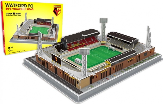 Složte si detailní repliku fotbalového stadionu Vicarage Road, domovského hřiště FC Watford, s tímto úžasným 3D puzzle. Ideální dárek pro všechny milovníky fotbalu.
