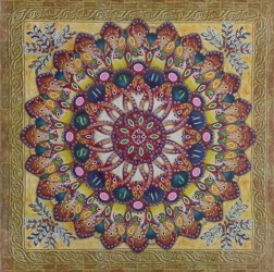 Diamantové malování 7D posouvá klasický 5D koncept o úroveň výš: kamínky mají různé tvary, velikosti i povrchové vzory a lepí se jen na vybrané části motivu. Díky tomu je výsledný obraz výraznější, jiskřivější a více prostorový. Motiv zlaté mandaly v rozměru 30 × 30 cm se skvěle hodí do moderních interiérů.
