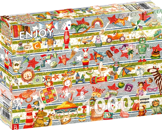 Užijte si relax s kvalitním puzzle o 1000 dílcích s motivem hračkařství. Díky přesnému výseku a příjemnému povrchu si vychutnáte hladké skládání, jasné barvy a pohodlný formát pro celou rodinu.