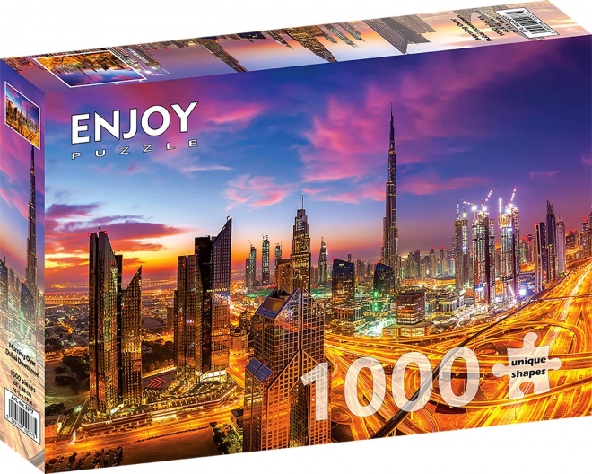 Elegantní ENJOY puzzle s motivem úsvitu nad Dubají přináší 1000 dílků plných detailů. Užijte si relax u skládání, rozměr cca 68 × 48 cm a krásné panorama města.