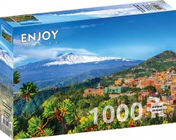 Užijte si kvalitní puzzle s působivým motivem sicilské krajiny – sopka Etna a historické město Taormina vytvářejí náladovou kompozici, která potěší milovníky cestování i umělecké fotografie. Díky 1000 pečlivě vyřezaným dílkům si dopřejete příjemnou výzvu i odpočinek.