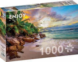 Vychutnejte si atmosféru exotiky s puzzle, které zachycuje zlatavý západ slunce na Seychelách. Skládání 1000 dílků nabízí příjemnou výzvu, rozvíjí trpělivost, soustředění a přináší pohodu pro celou rodinu.