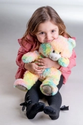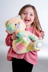 Plněné zvíře, které má duhovou srst, zachytává oči a je působivé nejen svým vzhledem, ale i jemností na dotek.