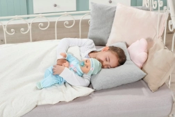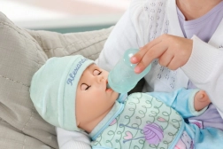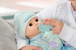 Pokud je čas na spánek, stačí mu dát dudlík a sledovat, jak zavírá své hnědé mrkací očička. Alexander si stěžuje a brebentí, když dostane svou lahvičku. S měkkým látkovým tělíčkem je panenka ideální ke mazlení a uklidnění.