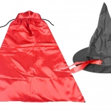 Tento dětský čarodějnický set promění každé dítě během chvíle v malého kouzelníka. Lehký saténový plášť se zavazováním u krku je pohodlný na celodenní nošení a špičatý klobouk s širokou krempou dotvoří autentický vzhled. Kostým je vhodný na Halloween, karneval, školní besídky i tematické oslavy.