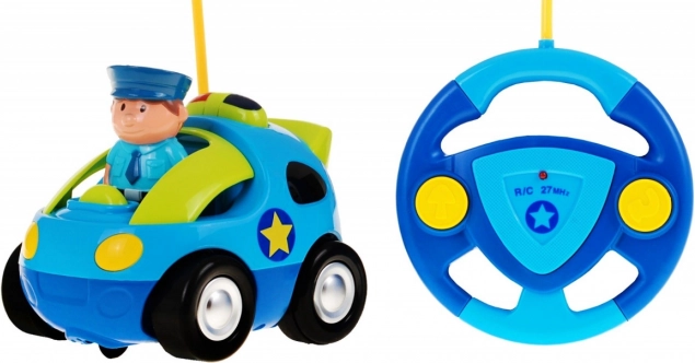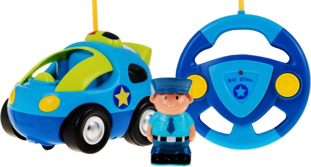 Zábavné a bezpečné RC policejní autíčko potěší děti už od 18 měsíců. Ovládá se jednoduchým volantovým ovladačem, nabízí světelné a zvukové efekty a v balení najdete i figurku policisty. Autíčko je odolné, bez ostrých hran, jezdí vpřed, couvá a zatáčí – ideální pro rozvoj motoriky a první zážitky se zdaleka ovládanými hračkami.