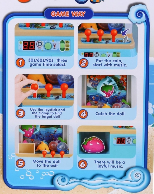 Mini automat s chňapákem je skvělou rodinnou zábavou, která rozvíjí zručnost, koordinaci a trpělivost. Děti vkládají žeton, páčkami ovládají kleště a během časového limitu se snaží ulovit kuličku nebo malou hračku. Skákavá melodie, světla a jasný časovač se postarají o napínavou herní atmosféru.
