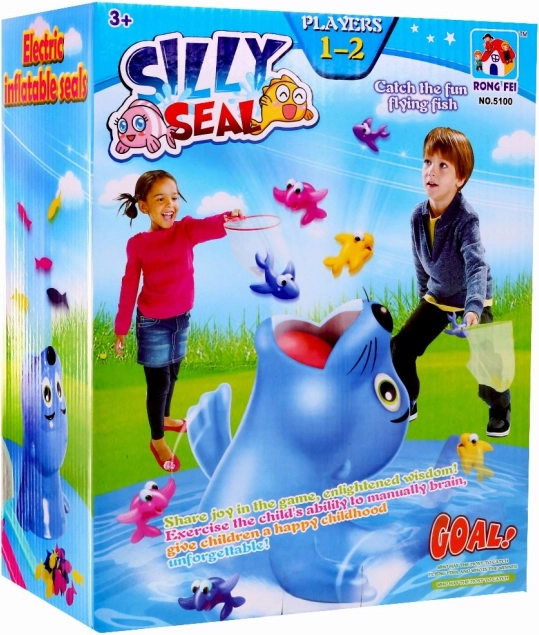Roztočte zábavu s veselým tuleněm, který vyfukuje barevné rybičky do vzduchu! Děti se snaží chytit co nejvíce rybek do plastových síťek a procvičují si při tom koordinaci oko–ruka, soustředění a zdravé soutěžení. Ideální pro rodinné chvíle i hraní ve dvojici.