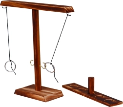 Objevte návykovou společenskou zábavu: tradiční házení prstencem na háček s jednoduchými pravidly a rychlou hratelností. Dřevěná konstrukce je pevná a lehká, takže hru snadno složíte i rozložíte doma, na dovolené nebo na párty. Skvělé pro děti i dospělé, rozvíjí postřeh, motoriku a přesnost.