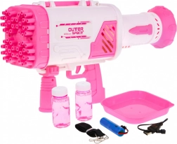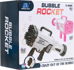 Zábavný bublinkový pistolek s futuristickým designem vytváří stovky bublinek díky hlavici s 52 otvory a efektním LED osvětlením. Součástí je nabíjecí akumulátor 3,7 V, dvě lahvičky roztoku a příslušenství pro pohodlné hraní. Lze použít i jako malý přenosný větráček – ideální na ven i na dětské oslavy.