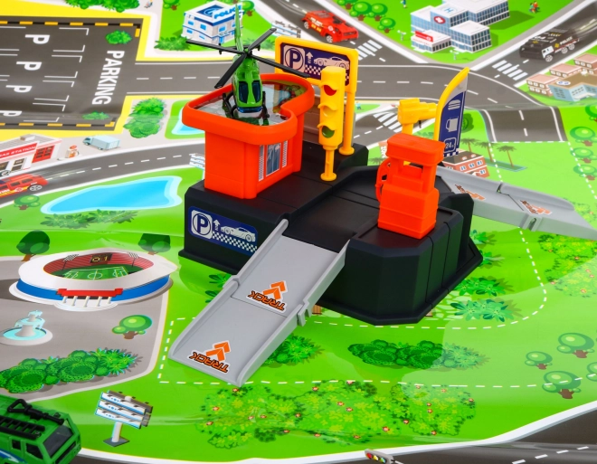 Dětské parkoviště s helipadou a hrací podložkou 3+