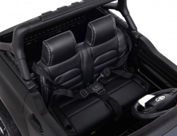 Malé řidiče potěší start na klíček, LED světla vpředu i vzadu, realistická palubní deska a bohaté audio: Bluetooth, USB, MP3, rádio FM, vstup pro kartu a AUX/mikrofon. Praktické jsou otevírací dveře, přední schránka pod kapotou i velký zadní kufr na hračky. Sedadlo z černé eko kůže s bezpečnostními pásy zajišťuje pohodlí i jistotu.
