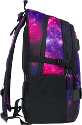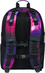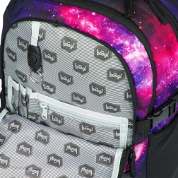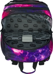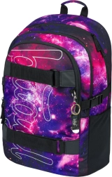 BAAGL Skate Galaxy je promyšlený školní batoh pro žáky, kteří chtějí praktičnost i styl. Tři samostatné komory usnadní přehledné uložení učebnic a sešitů, nechybí vnitřní organizér a polstrovaná kapsa pro 15" notebook nebo tablet. Přední strana je vybavena dvěma popruhy pro uchycení skateboardu, takže máte prkno vždy po ruce.