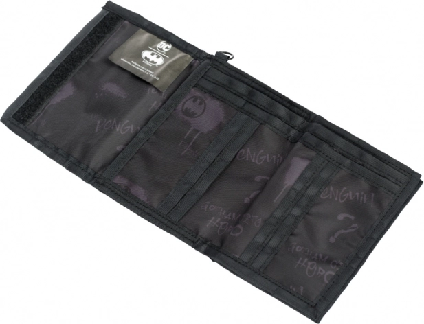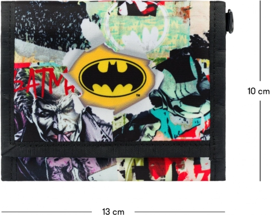 Tato jedinečná peněženka s oficiální licencí DC Comics se pyšní výrazným designem s motivem Batmana. Je vybavena několika přihrádkami pro karty a hotovost, což zajišťuje skvělou organizaci vašich cenností. Praktické uzavírání na suchý zip a očko pro uchycení na karabinku přispívají k její funkčnosti a bezpečnosti.