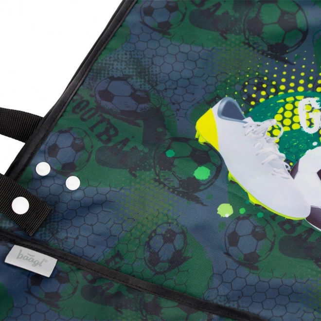 Stylová dětská zástěra s motivem fotbalu od značky BAAGL, ideální pro výtvarné kroužky a jiné pracovní aktivity. Praktické kapsy a odolný, omyvatelný materiál.