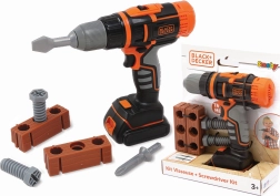 Dětská elektronická aku vrtačka a šroubovák SMOBY BLACK&DECKER potěší malé kutily realistickými funkcemi. Součástí je „cihla“ s otvory pro trénink, 3 výměnné bity, otáčení vpravo/vlevo, 2 rychlosti a LED podsvícení vrtáku.