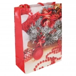 Tato vánoční dárková taška je perfektní pro dodání osobitého kouzla a elegance vašim dárkům. Kvalitní materiál zajišťuje, že taška je odolná a může pojmout předměty střední velikosti.
