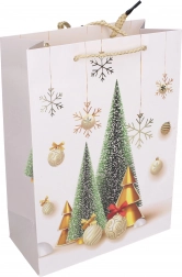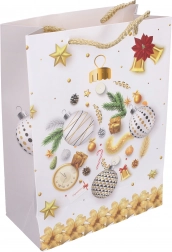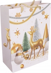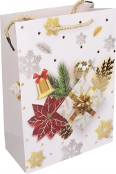Stylová dárková taška ve velikosti S s rozměry 18 × 24 × 8,5 cm je ideální pro balení menších dárků. Nabízí vánoční motivy, pevné provedení a pohodlné přenášení díky praktickým uchům.