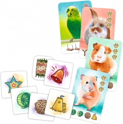 V chytré a hravé hře Pets & Friends se pustíte do pátrání po ztracených hračkách domácích mazlíčků. Za správně nalezené symboly získáte karty mazlíčků, které vám přinesou body na konci hry a zároveň odemknou užitečné speciální schopnosti během partie. Hra je ideální pro rodiny s dětmi i začínající hráče – naučíte se ji během chvilky a baví od první minuty.