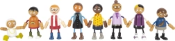 Objevte pestrý svět příběhů s flexibilní rodinkou dřevěných panenek. Dva páry rodičů, tři děti a miminko v nosítku, které lze připevnit k dalším postavičkám, nabízejí nespočet herních scénářů. Díky kombinaci dřeva a textilu jsou panenky robustní, detailně zpracované a příjemné na dotek.