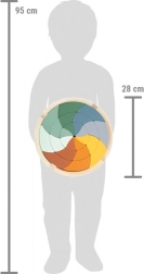 Toto designové dřevěné puzzle v moderních barvách přináší volnou hru v duchu Montessori. Děti si procvičí třídění, skládání, tvorbu vzorů i logické myšlení. Po složení vzniká působivý motiv mandaly, který může sloužit i jako dekorace dětského pokoje.