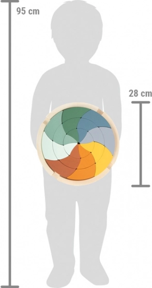 Objevte kreativní svět montessori her s tímto dřevěným kruhovým puzzle o 24 dílcích. Podporuje jemnou motoriku, barevné a tvarové rozlišování, prostorovou představivost i kreativní stavění. Lze skládat do krásné mandaly nebo využít dílky jako stavebnici – ideální pro děti od 3 let.