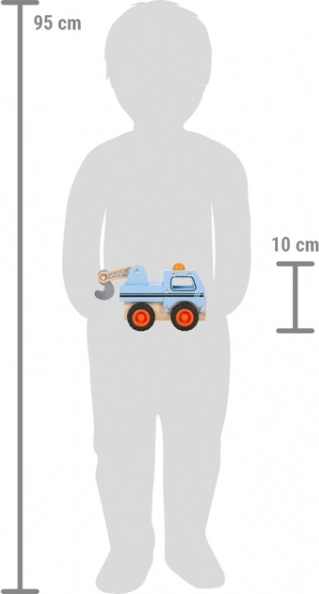 Toto robustní dřevěné odtahové vozidlo je ideální pro malé milovníky aut. Díky funkčnímu jeřábu s hákem děti snadno simulují odtah vozidel, rozvíjejí představivost a učí se principům hry na profese. Kabina nabízí prostor pro figurku (není součástí balení), pogumovaná kola zajišťují tichý a plynulý pohyb.