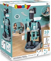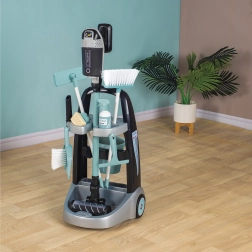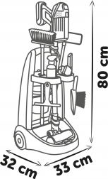 Součástí vozíku jsou košťátko, mop, lopatka, smeták, kyblík, houbička a čisticí prostředky, které děti plně zabaví při imaginární čisticí činnosti.
