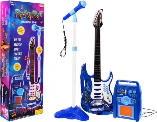 Dětský hudební set s elektrickou kytarou, mikrofonem na výškově nastavitelném stojanu a přenosným zesilovačem přináší dětem spoustu zábavy a rozvoj kreativity. Kytara má 6 kovových strun, nabízí 6 zvuků kytary, 6 melodií, 5 demo skladeb a 2 krátká sóla. Zesilovač umožňuje připojit kytaru, mikrofon i MP3 a má samostatné ovládání hlasitosti pro mikrofon i kytaru.