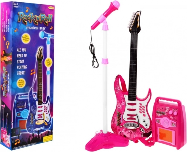 Staňte se malou hudební hvězdou s tímto kompletním setem pro děti 6+. Součástí je elektrická kytara se 6 kovovými strunami, nastavitelný mikrofon na stojanu a přenosný zesilovač. Set nabízí 6 kytarových tónů, 6 melodií, 5 demo skladeb a 2 krátká sóla. Zesilovač umožňuje připojit kytaru, mikrofon i MP3, takže zábava nikdy nekončí.