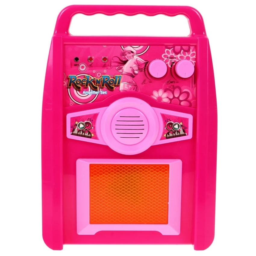 Tento růžový hudební set je ideální pro první krůčky do světa hudby. Díky živým barvám a promyšlenému zpracování zaujme děti a podpoří jejich kreativitu i sebevědomí při vystupování. Přiložený výškově nastavitelný stojan s mikrofonem a přenosný zesilovač vytvářejí autentický zážitek skutečného koncertu.