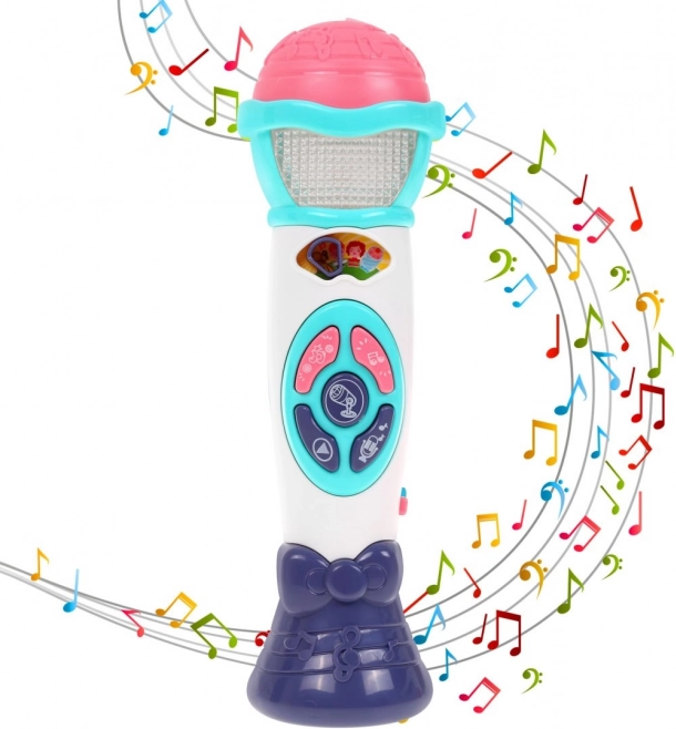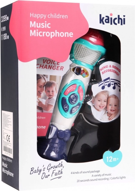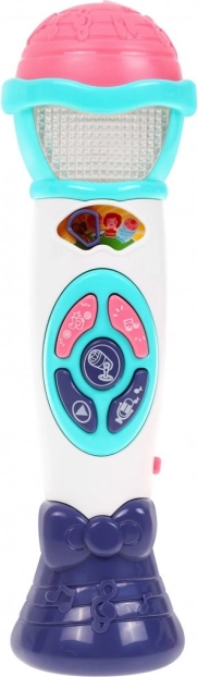 Mikrofon je uzpůsoben dětským ručkám, je lehký, odolný a vhodný už od 12 měsíců. 20 vestavěných melodií podněcuje smysl pro rytmus, řeč i sebevyjádření. Napájení 2× AA (nejsou součástí balení) zajistí jednoduché používání doma i na cestách.