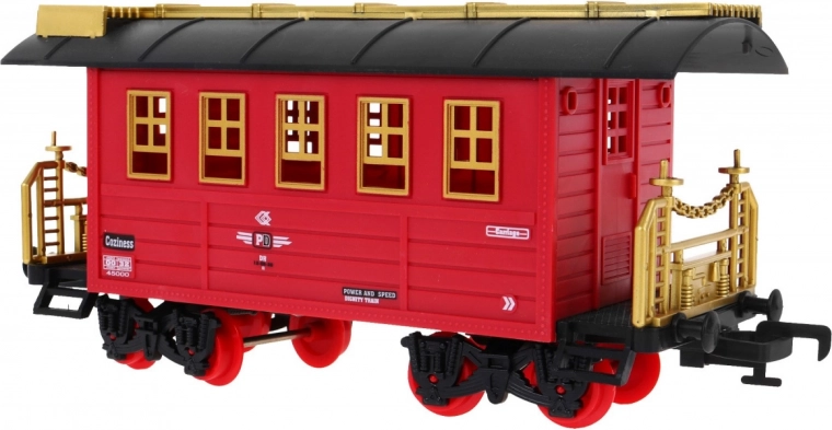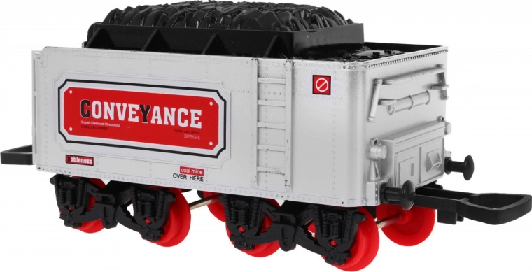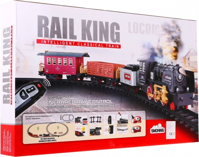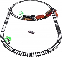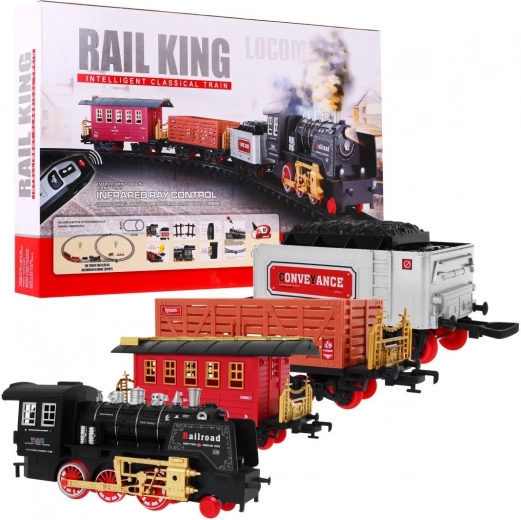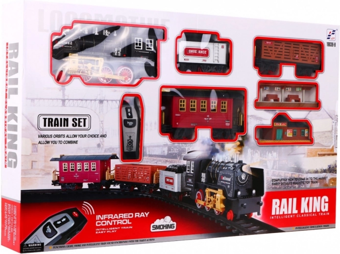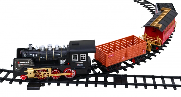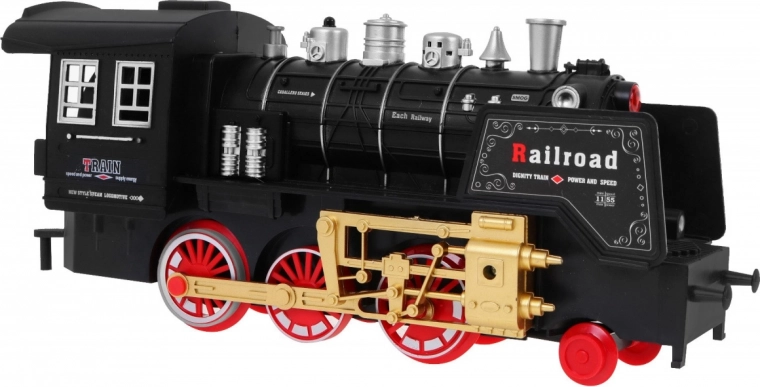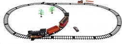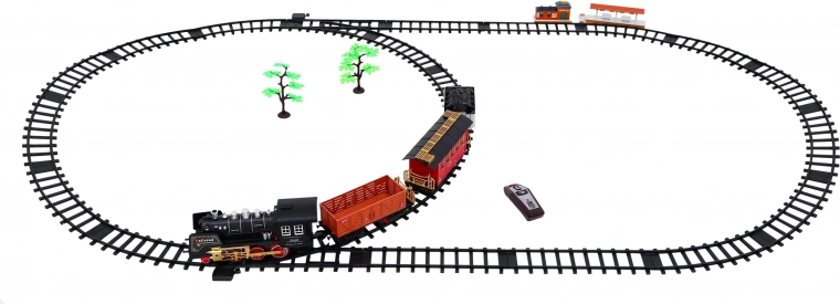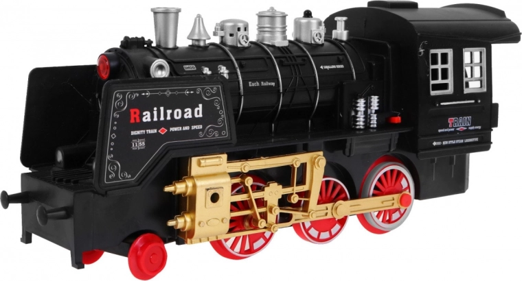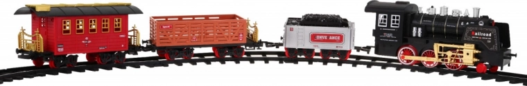 Tato klasická parní souprava na kolejích potěší malé i velké milovníky vlaků. Lokomotiva se rozjíždí plynule na povel přes infračervený ovladač, vydává realistické zvuky jízdy a troubení, rozsvěcí světla a vytváří efektní kouřový dým pro ještě věrnější atmosféru železniční stanice.