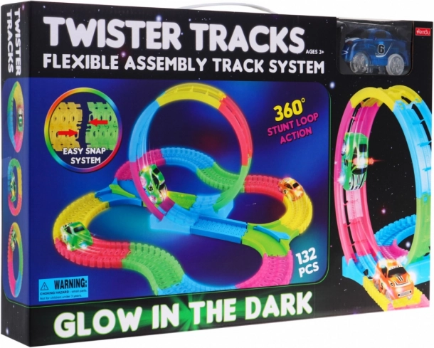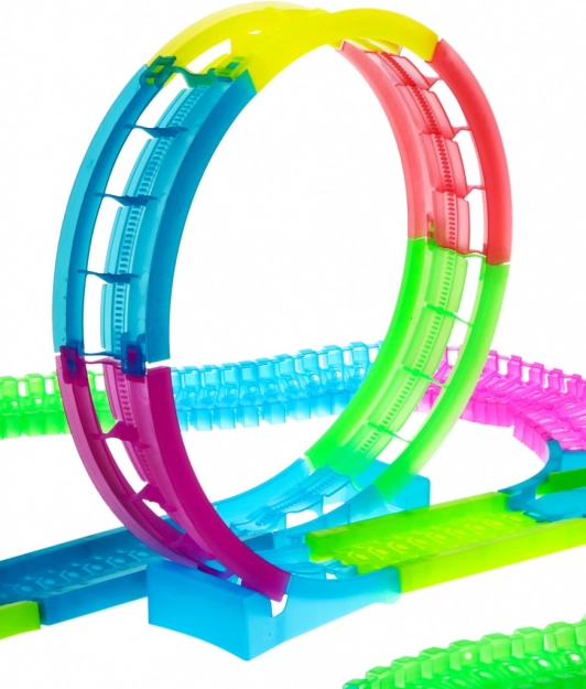 Tato velká svítící závodní dráha je určena pro děti již od 3 let. Působí fluorescenčně a krásně svítí ve tmě, což spolu s LED osvětlením autíčka vytváří úžasné efekty. Snadná montáž a jednoduchost ovládání z ní dělají skvělý doplněk pro každou dětskou hru.