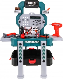 Součástí je 78 dílů včetně pilky, kladívka, šroubováku, klíčů, šroubků a dřevěných „prkének“. Po hraní vše snadno uloží do velkého kufříku s madlem. Skvělé pro rozvoj jemné motoriky, kreativity a role-play.