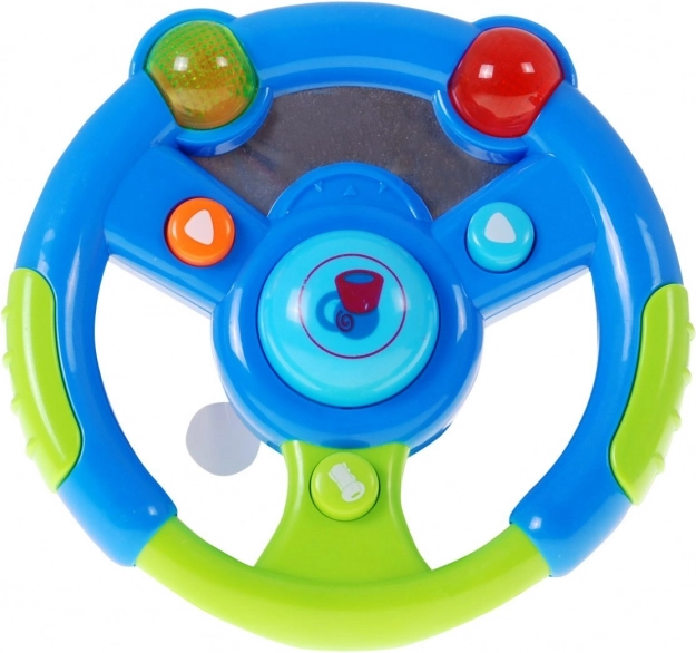 Volant je vybaven displejem a zvuky, které napodobují skutečné řízení. Ergonomický tvar perfektně sedí do malých rukou.
