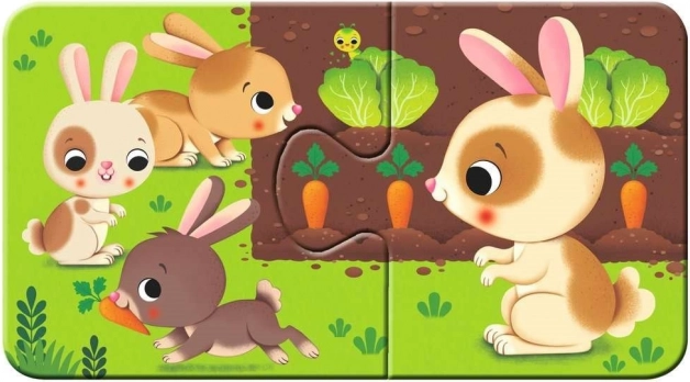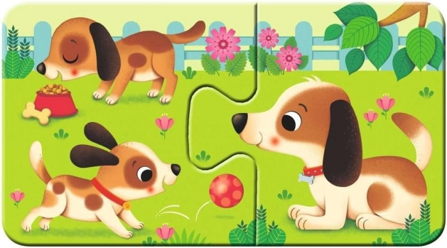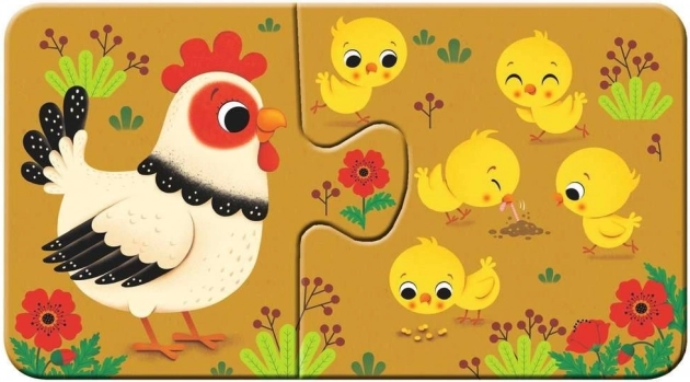 Objevte radost ze skládání s RAVENSBURGER Moje první puzzle – zvířátka a mláďátka. Devět jednoduchých dvojic s roztomilými ilustracemi je ideálním začátkem pro malé děti, které se učí spojovat související obrázky a poznávat svět zvířat.
