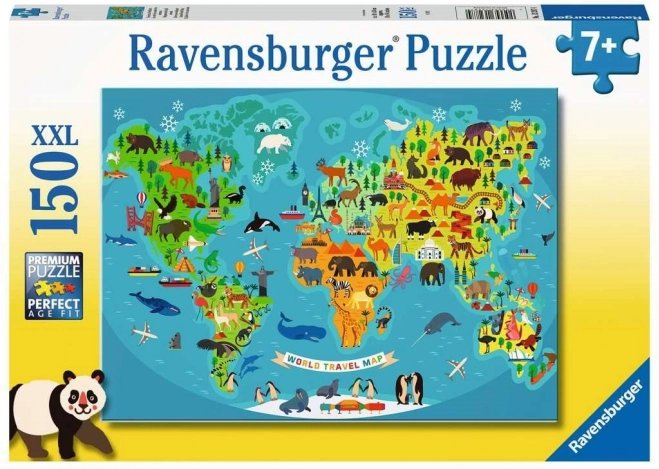 Puzzle RAVENSBURGER s tématem mapy světa a divokých zvířat potěší všechny malé badatele. Díky 150 XXL dílkům je ideální pro děti, které chtějí rozvíjet své dovednosti a poznat nové informace o přírodě a zeměpisu. Obrázek po složení měří cca 49 × 36 cm, takže se skvěle vejde na stůl nebo podložku.