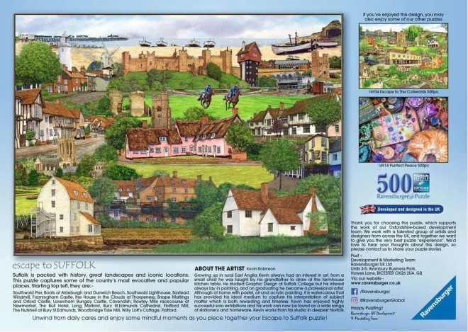 Užijte si relaxaci i zábavnou výzvu s puzzle RAVENSBURGER „Útěk do Suffolku“ o 500 dílcích. Kvalitní zpracování, přesné výřezy a krásný motiv pro klidné večery i trénink soustředění.