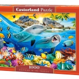 Objevte kouzlo tropického oceánu s těmito puzzle 1000 dílků s motivem delfínů v exotickém ráji. Sestavený obrázek má rozměr 68 × 47 cm a dílky o průměrné velikosti cca 1,9 × 1,7 cm zaručují zábavnou a zároveň uklidňující skládanku. Kvalitní zpracování a nádherné barvy potěší milovníky puzzlí i jako dárek.