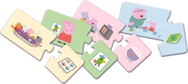 Hra skládanka s motivem Prasátko Peppa nabízí skvělou příležitost k rozvoji pozorovacích schopností a logického myšlení. Tato vzdělávací hra obsahuje 14 dvoudílných skládanek, které je potřeba rozdělit, důkladně promíchat a poté rozložit na stole obrázky nahoru.