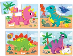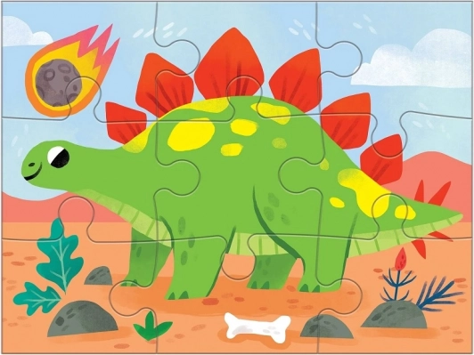 Objevte zábavnou sadu čtyř puzzle s motivem dinosaurů, která roste s dovednostmi dítěte – skládanky s 4, 6, 9 a 12 dílky nabídnou postupnou výzvu a spoustu radosti. Kvalitní tisk nezávadnými barvami, matná povrchová úprava a pevná krabice z recyklovaných materiálů zaručují dlouhou životnost i krásné barvy.